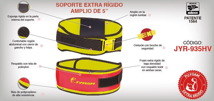 • Cuerpo extra rígido que se ajusta firme y cómodamente al cuerpo del usuario. · Paletas de primer ajuste con cierre de gancho y felpa de gran adhesión.